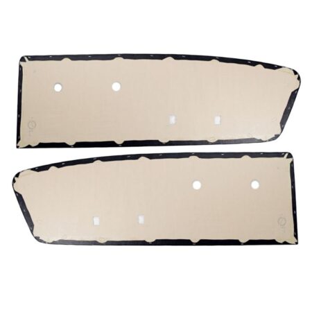 Distinctive Industries 1966 Mustang Standard Front Door Panels feature the original Sierra grain in 32 oz. vinyl. The dielectric patterns and pleats are correct along with the chrome (Mylar®) C-trim. Correct hole placement is pre-cut into the panel backed by die cut fiber board, just like the originals.