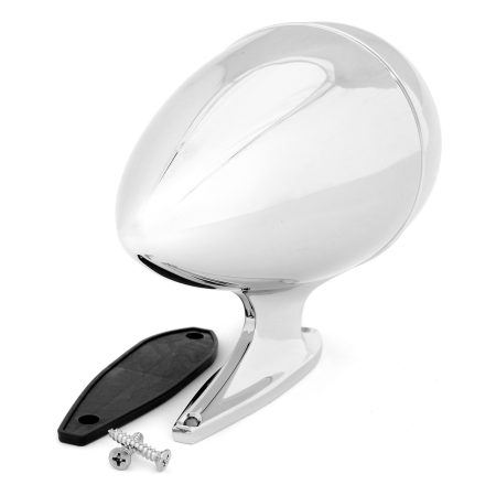 - Factory-correct reproduction assembly with chrome finish and bullet shaped round mirror housing