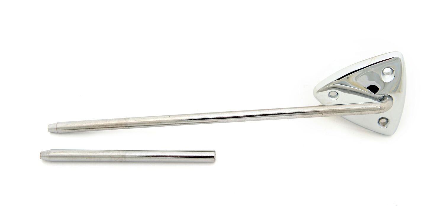 - Factory-correct die cast reproduction with chrome finish secures sunvisor to outer and inner mounting points along front of roof panel