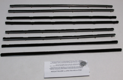 This Authentic-Style Kit includes inner and outer felt Beltline Weatherstrip for the glass in all 2 Doors (8 Peices).