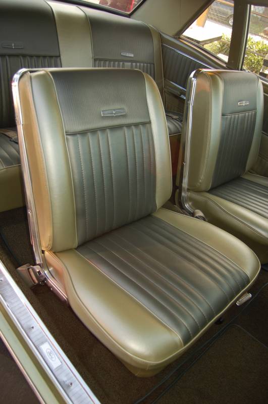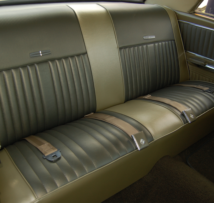 Distinctive Industries 1966-67 Falcon Seat Upholstery is a correct reproduction of the original. We offer the original Sierra grain in 32 oz. vinyl, with the correct vertical patterns, correct embossing on the seat back and upper lean back, and sewn as original.