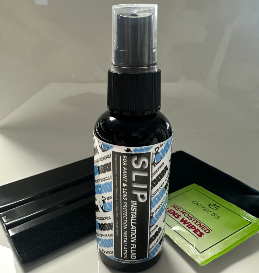 *We suggest the use of “SLIP” to install paint and lens protection film to reduce possible clouding behind the film. We offer SLIP in our Tools section or you can make your own with the SLIP formula: 8oz Isopropyl Alcohol, 8oz Water, 1ml Baby Shampoo.